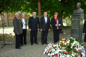 Az iskola küldöttsége is elhelyezte a tisztelet koszorúját Jedlik Ányos szobra előtt.