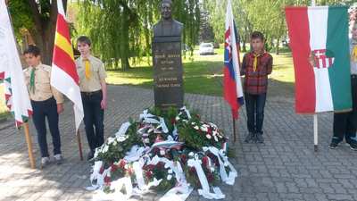 A koszorúzáson Módos Gábor és Élő Tamás , a győri Jedlik Ányos Középiskola igazgatóhelyettesei rótták le tiszteletüket.